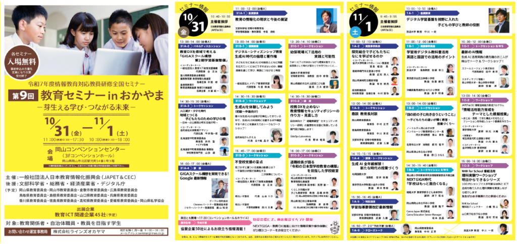 教育セミナーinおかやまの各セッションにたくさんのお申込みをいただき