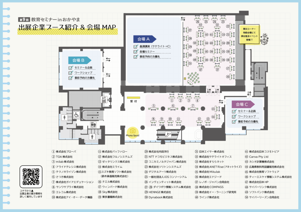 「教育セミナーinおかやま」は本年は50社の協賛をいただき開催いたします。